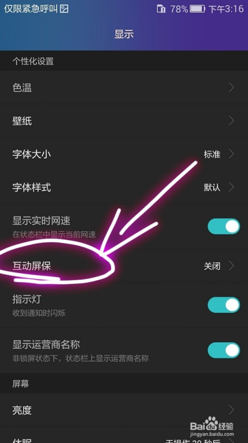 此时打开显示的相关设置页面,从中可以看到互动屏保设置;