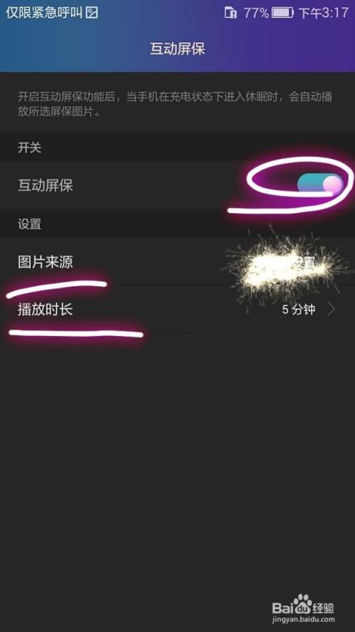 最后,我们直接将该功能后边的开关调整至开启状况即可,我们可以按照本身的需要来设置图片来历和播放时候长短。