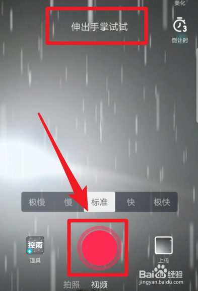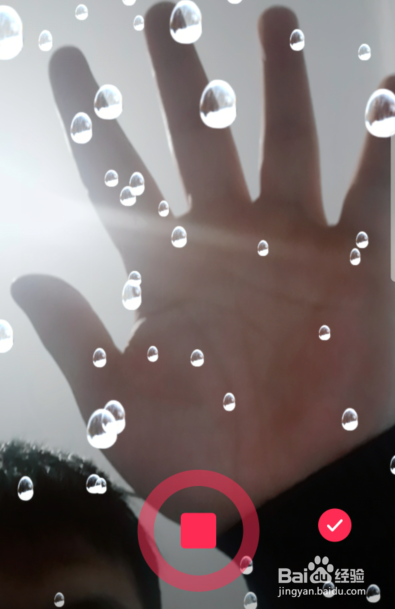 点击后,在录制的过程中,我们将手掌伸出瞄准屏幕,就可以看到雨滴就会静止。