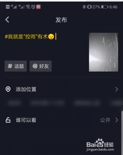 拍摄雨滴遏制后,我们点击下一步,进入到视频的发布界面。