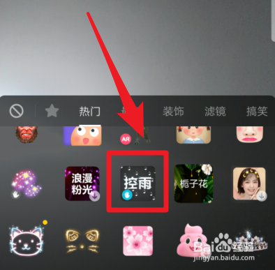 进入后,在热点分类下方,我们点击页面的控雨的图标,应用该特效。