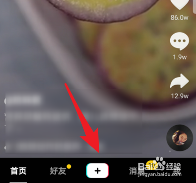 我们打开抖音进入后,点击下方的加号进入拍摄界面。
