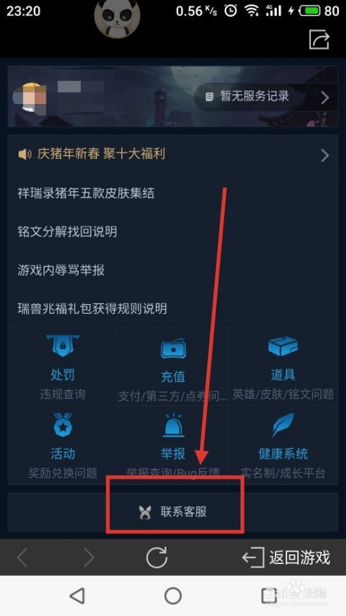 第四步,游戏会弹出一个网页,我们再次点击【联系客服】按钮,具体如下图