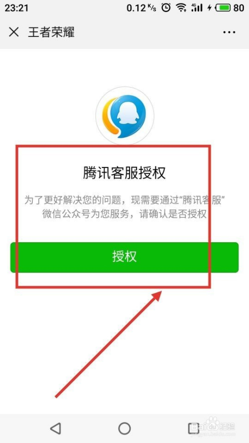 第五步,系统主动跳到微信【腾讯客服】公家号,若是第一次登岸需要授权,具体如下图