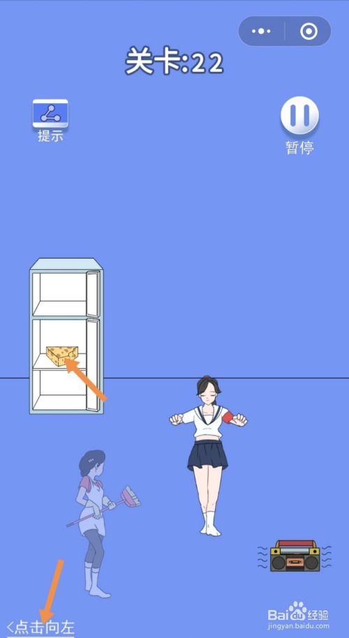 第21关先点击点击标的目的右进入右边的房间。