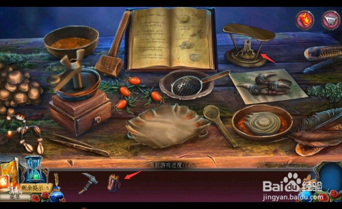 首先我们把建造猎人之尘的材料放到桌子上,如图所示;