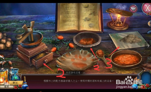 接着用勺子取各个材料必然的份数并进行搅拌就获得猎人之尘了,如图所示;