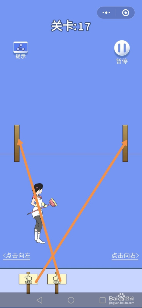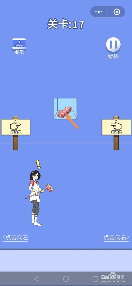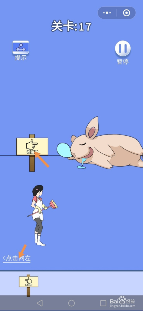 第17关先点击路牌,然后点击点击标的目的右进入右边的房间。
