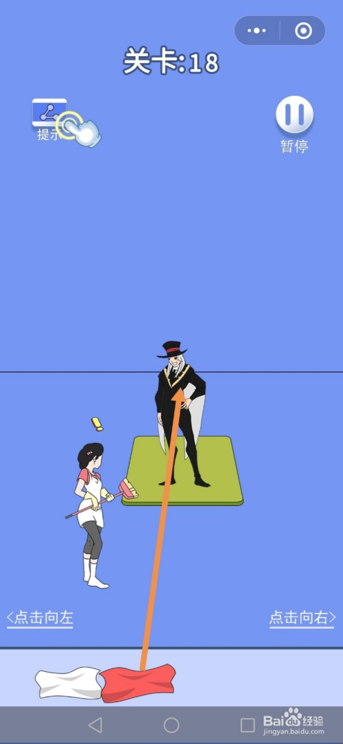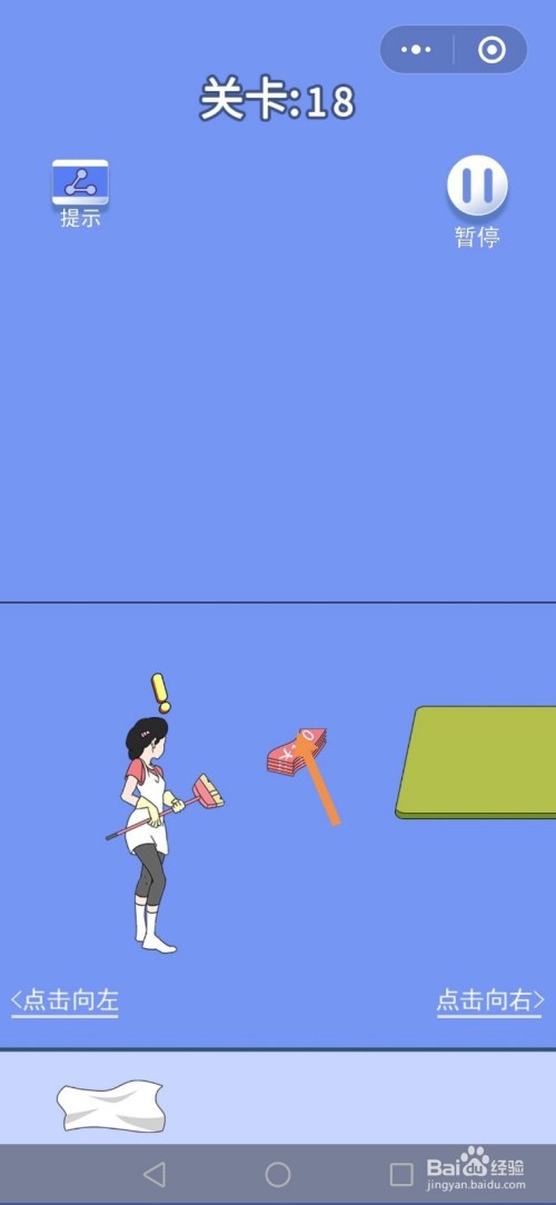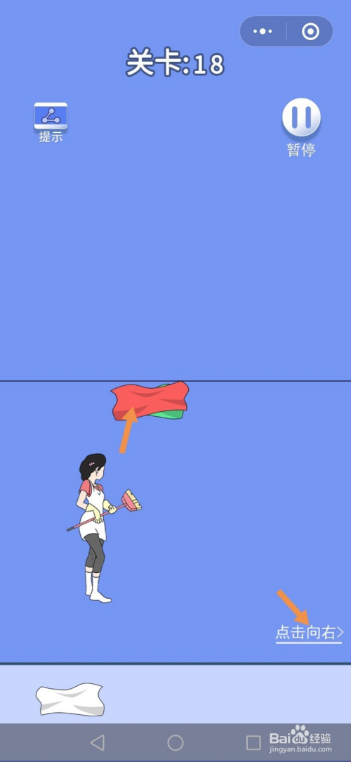 第18关先点击白布,接着点击红布,然后点击点击标的目的右进入右边的房间。