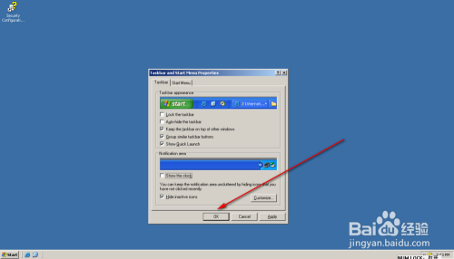 点击属性按钮,使命栏和开始菜单属性对话框主动打开;