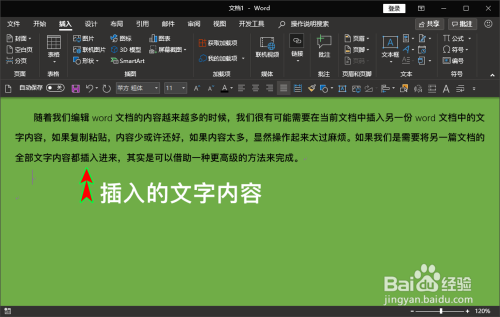 - word文档中可以将另一篇word文档中全数的文字内容一次性快速插入到当前文档中;