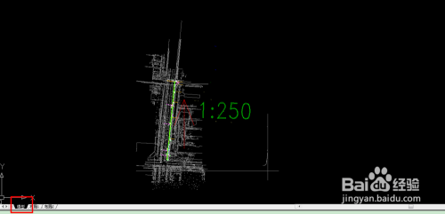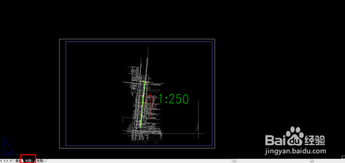 随意打开肆意一张图纸,如图所示。方针是在结构窗口找到”1:250“的出图比例。