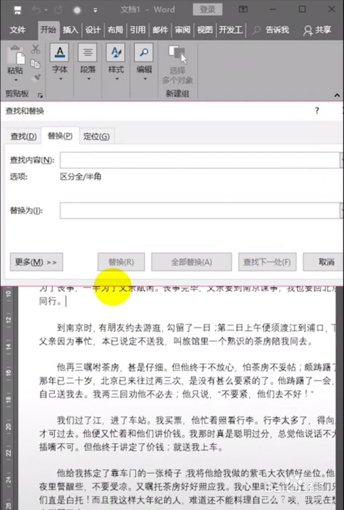 1、我们可以再选项中找到“替代”选项,点击即可,或者ctrl+H,就会弹出替代界面。