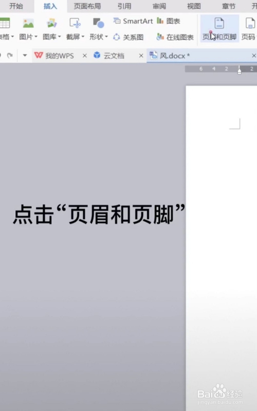 2、然后在插入的选项栏界面中找到“页眉和页脚”,单击即可