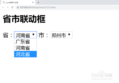打开网页--查看默认市级下拉框--》在别离选择河南省和河海说神聊省查看市级下拉框的转变。结论是市级下拉框会随省的改变而改变。具体操作成果如下图所示:
