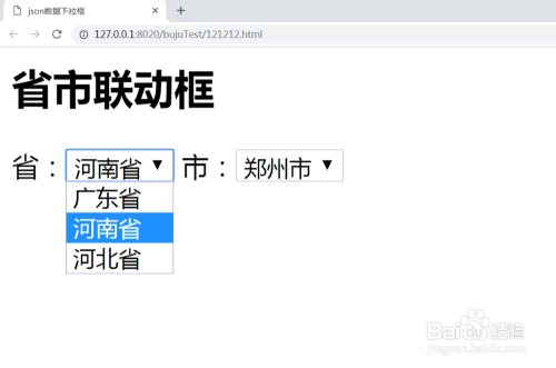 第三步:测试省市级联。
