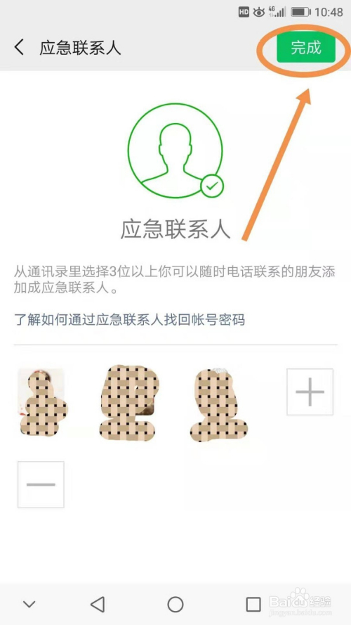 确定之后就会回到“应急联系人”页面,可以看到,选择的联系人已经列在屏幕下方了,点击完当作就可以了。