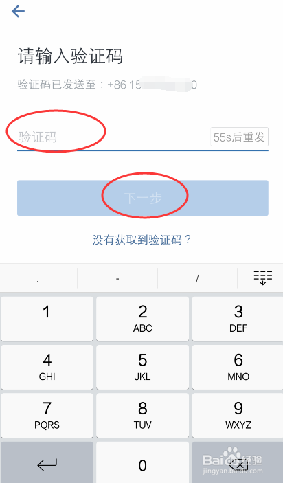 手机短信收到验证码后,输入验证码,点击【下一步】