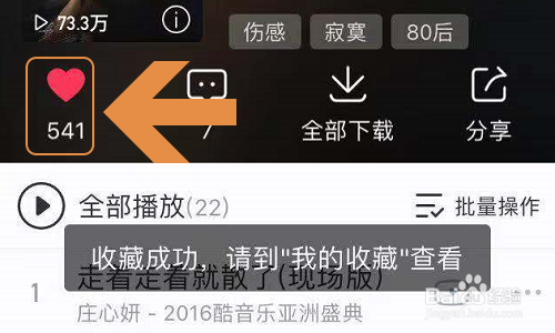 其实若是歌单里的大部门歌曲都是我们喜好的,那么在歌单的左上方点击保藏的心形图标就可以了,如下图所示...
