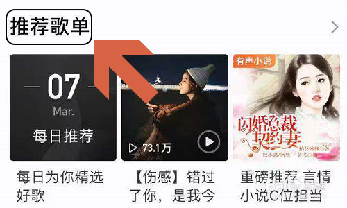 首先让我们来看看所谓的歌单是什么,在哪里可以找到它们,下图就是酷我音乐APP首界面,页面中心就会有各类歌单;