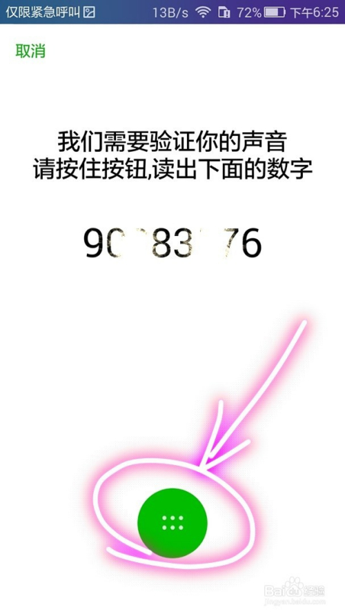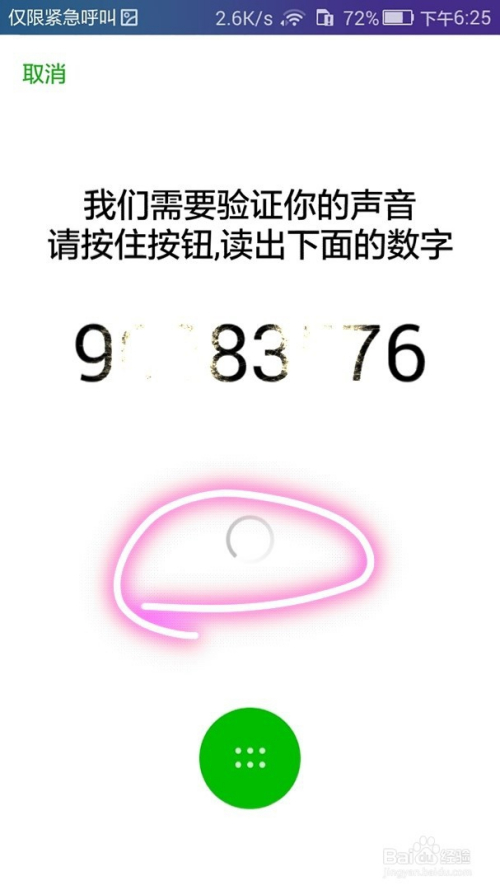 接着即可看到该按钮旁呈现声波似的圆圈环绕适才的按钮,这时正在录用识别,我们用通俗话正常语速读出这8位阿拉伯数字;