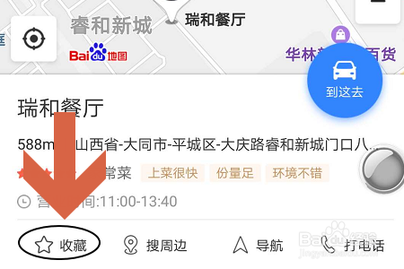 点击今后页面下方会弹出该餐厅或者超市的具体位置,如下图一...若是感受这样仍是不轻易记住,那么点击下方的“保藏”就行;