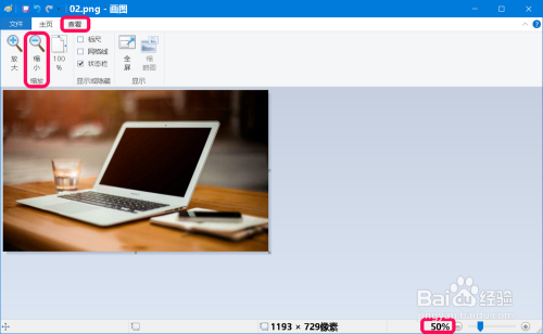 我们再点击【查看】-【缩小】,可以看到图片缩小到原图片的50%;