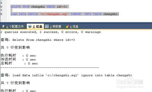 LOAD DATA INFILE 'c:/chengshi.sql' IGNORE INTO TABLE chengshi;
