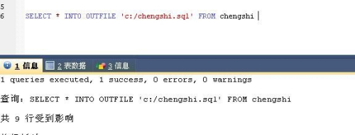 SELECT * INTO OUTFILE 'c:/chengshi.sql' FROM chengshi