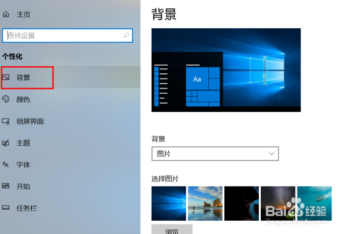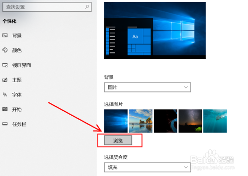 可以选泽系统自带的布景图片,也可以点击“浏览”对话框,选择本身喜好的图片。