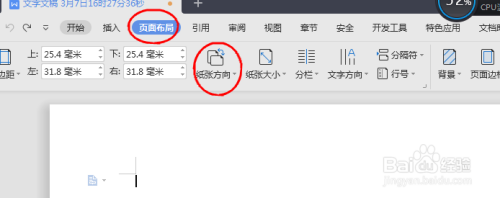 首先用WPS新建一张空白的文件。在页面安插里面找到纸张偏向,调整一下纸张的偏向,我们需要做的是横标的目的的。