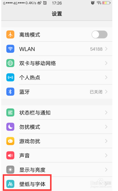 打开手机,找到“设置”,找到“壁纸与字体”。