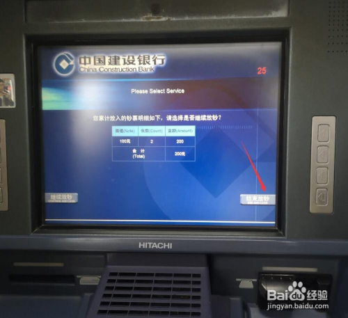 然后我们选择存条目营业,这时就会弹出放钞口,我们将需要存的钱放进去,点击确定,然后点击“竣事放钞”即可。