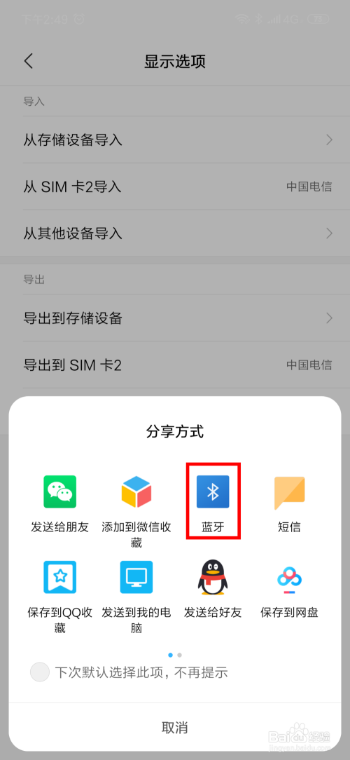 在弹出的选项中,点击选择第1个选项"导入/导出为联系人"。