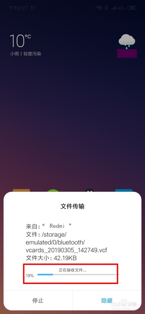 利用蓝牙传输文件,需要旧手机和新手机同时开启蓝牙,并准确选择被传输文件的新手机的蓝牙名称(作者此处是将红米手机的联系人传输传输到小米手机)。