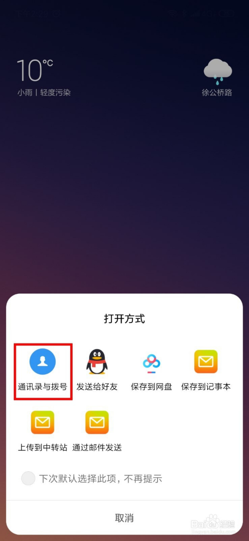 这时,会弹出提醒"是否将vCard导入联系人",点击"确定"。