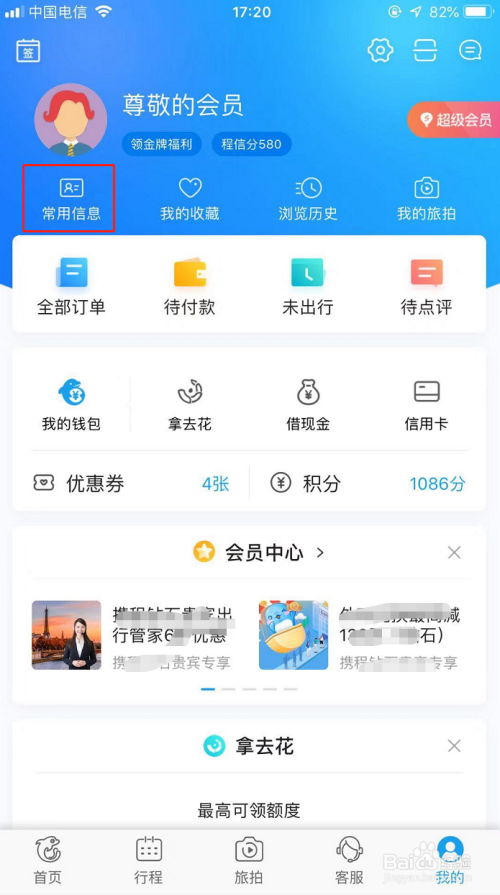 在我的本家儿页下,找到头像下边的【常用信息】一栏,点击此栏,如图所示!