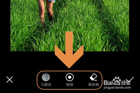往左滑动东西栏,然后我们是可以找到“马赛克”东西的,见图一...点击今后会弹出三个编纂选项,别离是马赛克、粗细以及橡皮擦;