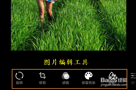 然后我们会在该图片的最下方看到“编纂”选项,点击今后就能看到一些常用的图片编纂东西了;