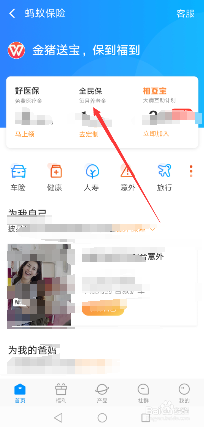 进入蚂蚁保险界面后,直接点击这里的【全平易近保】,如下图所示。