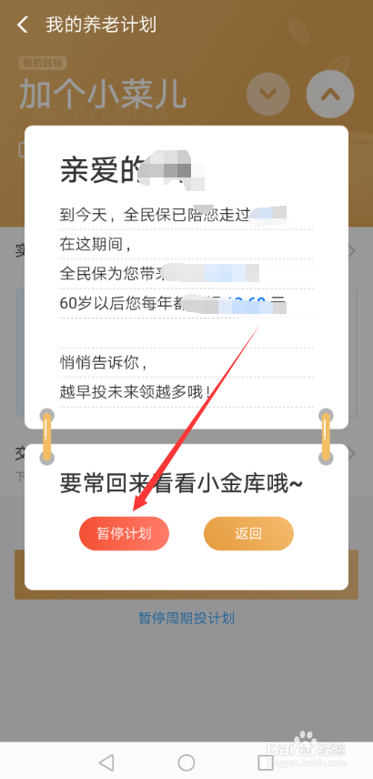 在弹出的暂停打算弹窗里直接点击左下角的【暂停打算】,如下图所示。
