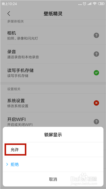 在壁纸精灵的权限设置中点击【锁屏显示】权限。