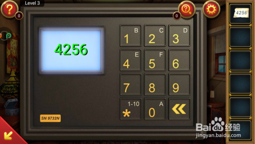 操纵钥匙打开右面的柜子,掏出里面的纸,将纸上的数字记住。