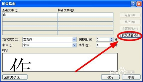 在第6步也可以经由过程单击“默认读音”来快速点窜读音,可是要包管程序保留的默认读音的精确性