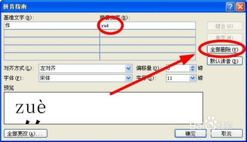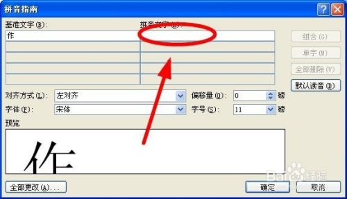 在“拼音文字”下方的输入框顶用输入法“特别符号”输入准确的读音“zuò”
