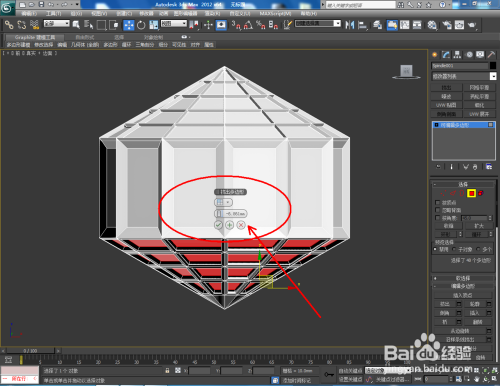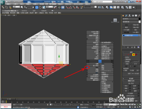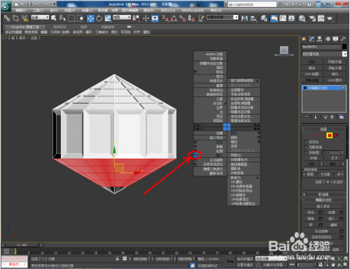 点击【面】图标,按图示选中模子底部的部门面后,点击鼠标右键-【插入】,设置好插入多边形的各个参数后,点击鼠标右键-【挤出】,并设置好挤出多边形的各个参数(如图所示);