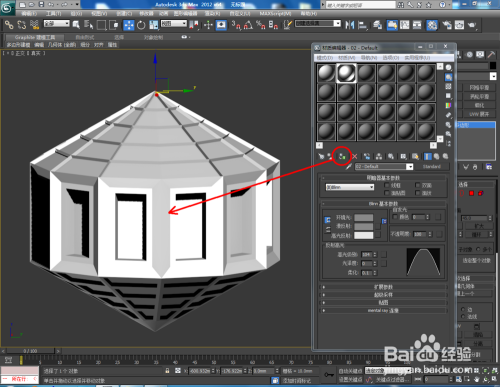 经由过程利用编纂多边形面完当作模子的建造后,点击【材质编纂器】,设置一个金属材质球并附加给模子。最后,点击【衬着】,将建造好的模子衬着出图即可。