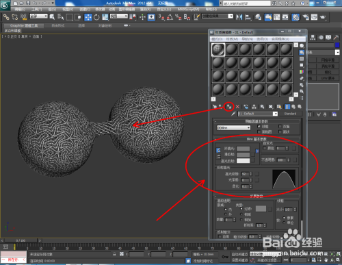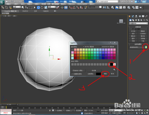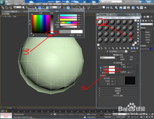 点击【材质编纂器】,弹出材质编纂器设置栏,按图示参数设置一个白色材质球并附加给模子。选中模子,点击【对象颜色】将模子的对象颜色设置为黑色。完当作后,复制出别的一个球体模子;