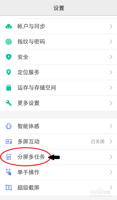 在“设置”页面,滑动页面,点击【分屏多使命】如图所示。