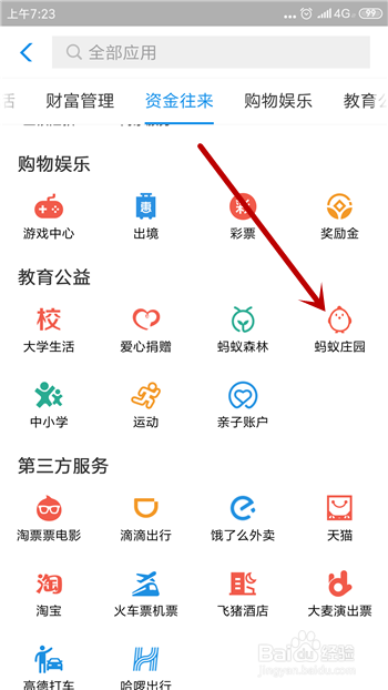 蚂蚁庄园其实就是支付宝的一个公益项目,我们天天的小鸡收成的爱心可以用来捐赠,在支付宝的应用里点击打开【蚂蚁庄园】。